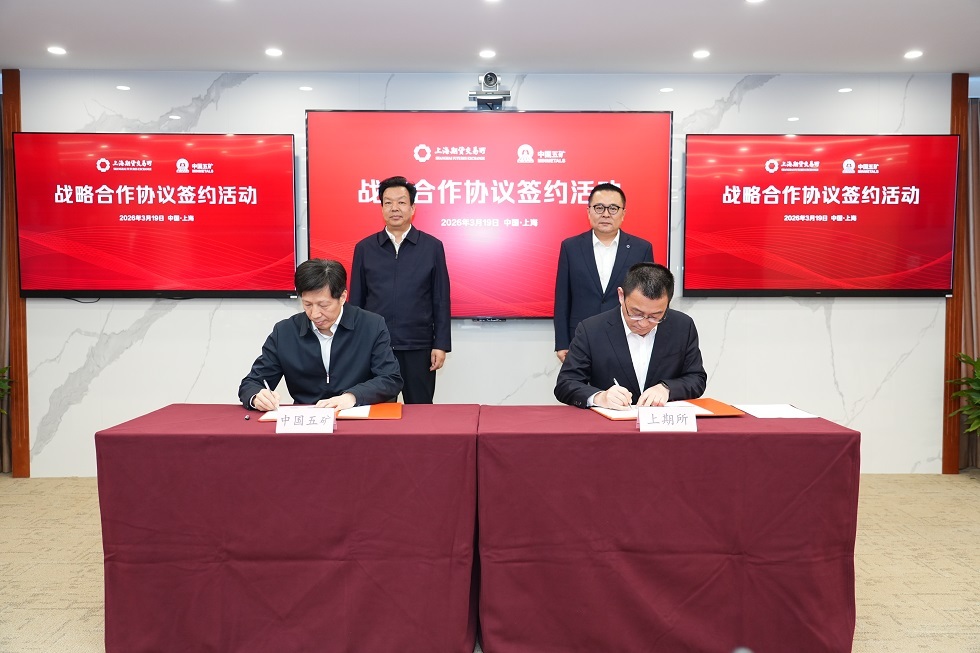 3月19日,中國五礦與上海期貨交易所(以下簡稱上期所)在滬續(xù)簽戰(zhàn)略合作框架協(xié)議。中國五礦黨組書記、董事長陳得信與上期所黨委書記、理事長田向陽座談并見證簽約。上期所黨委副書記、總經(jīng)理魯東升,上期所副總經(jīng)理張銘,中國五礦黨組成員、總會計師段文務(wù)出席。